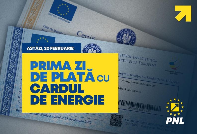 De astăzi, cardurile de energie pot fi utilizate pentru plata facturilor! Beneficiarii pot folosi prima tranșă de 700 lei pentru a plăti facturi curente ori restante la electricitate, gaz sau încălzire (inclusiv termoficare în sistem centralizat).