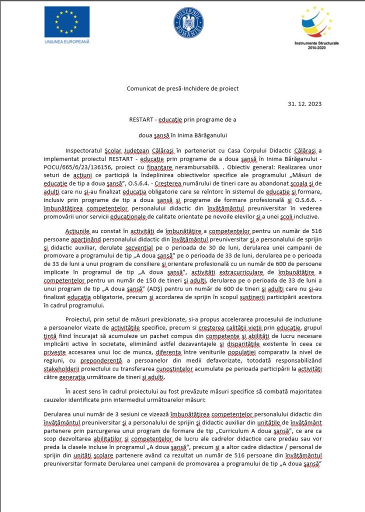 Stiri Comunicat de presa ! Published 2 years ago on 31/12/2023 By inCalarasi.ro Share Tweet Related Topics: Up Next “Scandal la Ministerul Agriculturii: Ministrul dispărut, Secretarul de stat absent, iar fermierii în așteptare” Don't Miss Comunicat de presa Continue Reading You may like Click to comment Leave a Reply Cancel replyYour email address will not be published. Required fields are marked *Comment * Name Email Website Advertisement Latest Trending Videos Reclame2 years ago Comunicat de presă ! Entertainment2 years ago Comunicat de presa ! Stiri2 years ago Comunicat de presă Stiri4 years ago KFC-Drive Thru in Călărași Educatie4 years ago Borcea | Petrecere pentru copii, organizată de primarul Nedelcu Pațurcă Theodor Aniel Uncategorized4 years ago Doi noi subprefecți pentru județul Călărași Local3 years ago Mulțumesc colegilor din primărie, pentru promptitudinea de care dau dovada- Ilie Mihai -Primar oras Budesti Local4 years ago VIDEO – Acțiuni pentru siguranța rutieră \ 18 permise de conducere reținute ,134 de sancțiuni contravenționale si un cerificat de înmatriculare retras \ inCalarasi.ro Local4 years ago Liviu Petrache a fost ales președinte al TNL Călărași Cele mai vizualizate