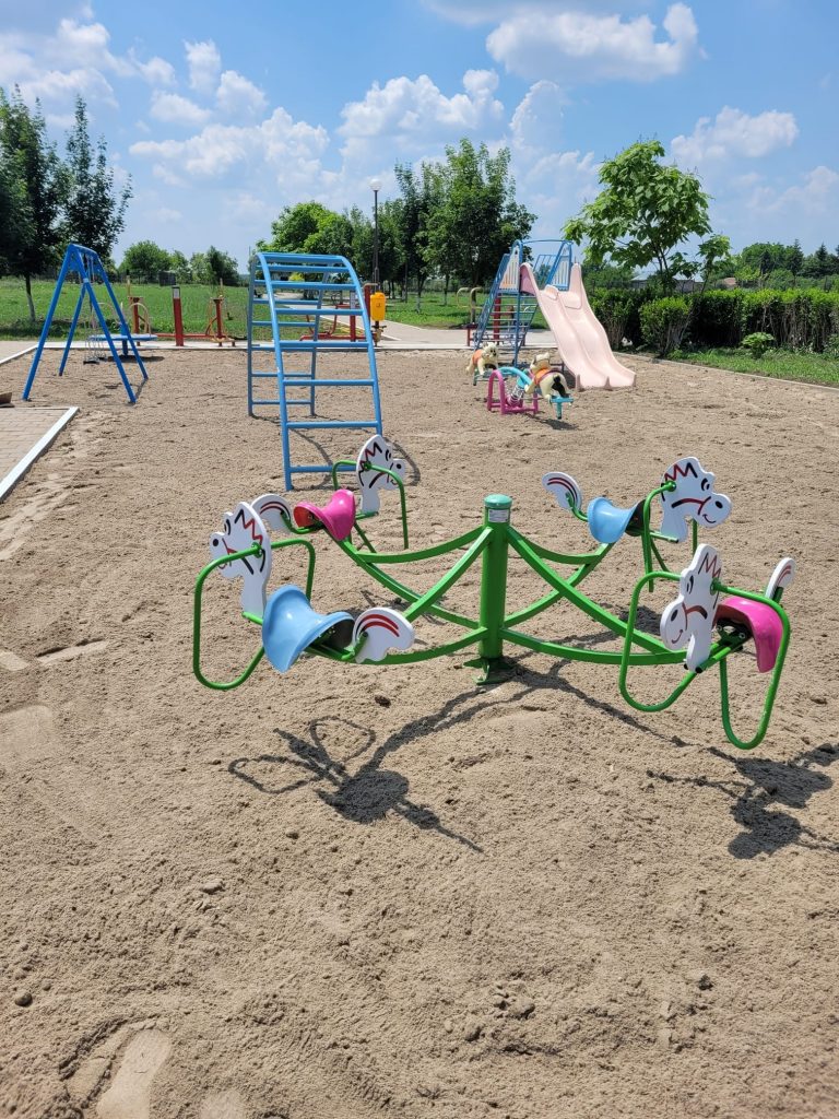 Surpriza noastră pentru voi, este finalizarea lucrărilor de amenajare și dotare a parcului mare de la baza sportivă, vis-a-vis de primărie. Vă așteptăm, copii, părinți, tineri, bunici să vă bucurați de toate aceste lucruri. S au făcut eforturi mari pentru finalizarea acestor obiective și doresc să le mulțumesc tuturor celor care au pus umărul să terminăm în timp util.