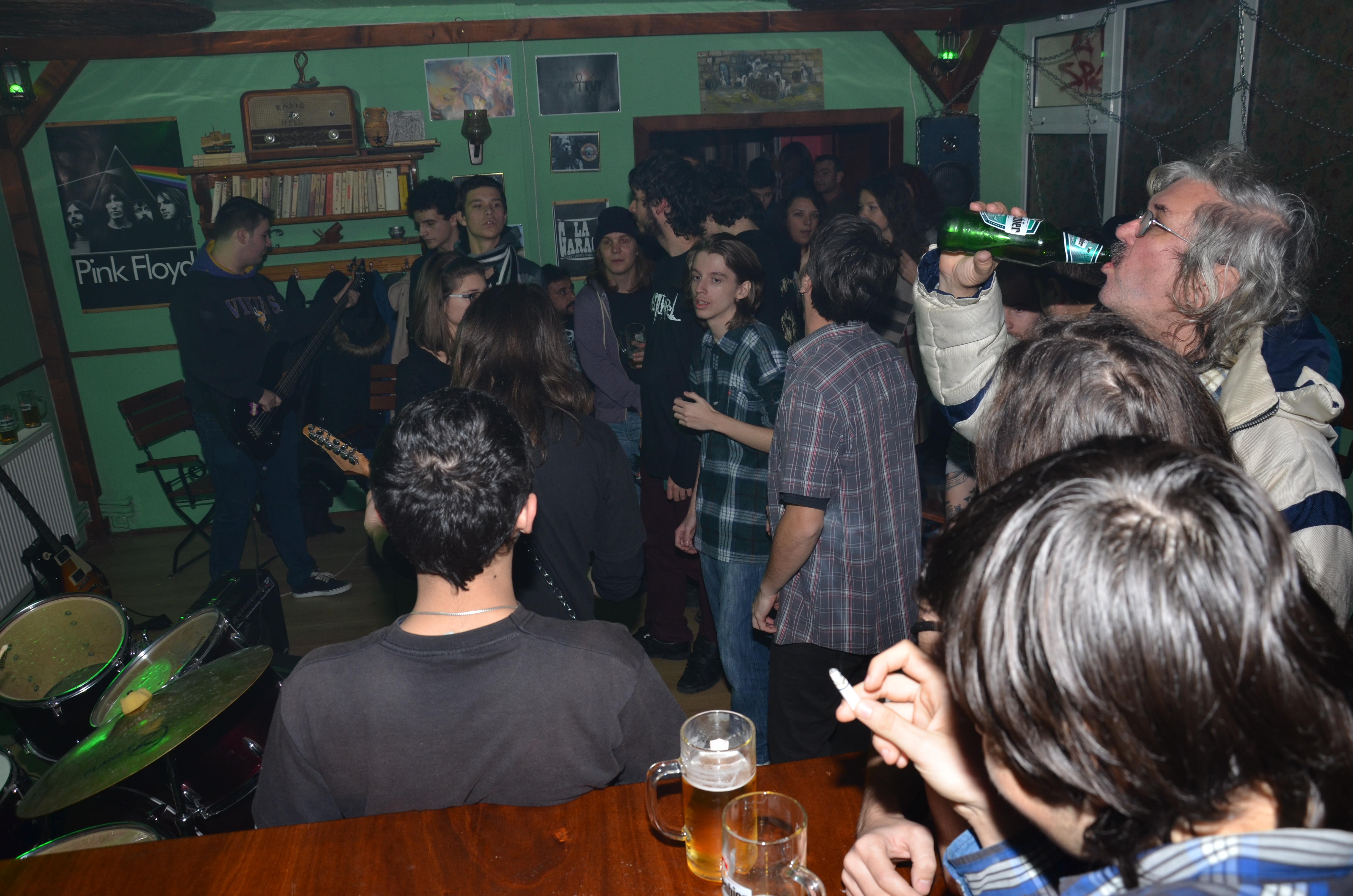 Intr-o atmosfera de pub acompaniata de sunete live , umpluta cu multa bere la draught si shoturi de tequilla , “Baietii de la Garage” si cei de la “Captive” au dat foc salii cu reprezentari live a unor piese rock precum ‘I love Rock and Roll ” a celor de la Arrows si multe alte improvizatii instrumentale , de exemplu am avut parte de o reprezentare live solo de percutie la tobe de am fost lasati cu totii la propriu fara cuvinte , atmosfera a fost intretinuta cu licori bahice , un mediu friendly si pot spune o surpriza placuta in minunatul nostru oras.