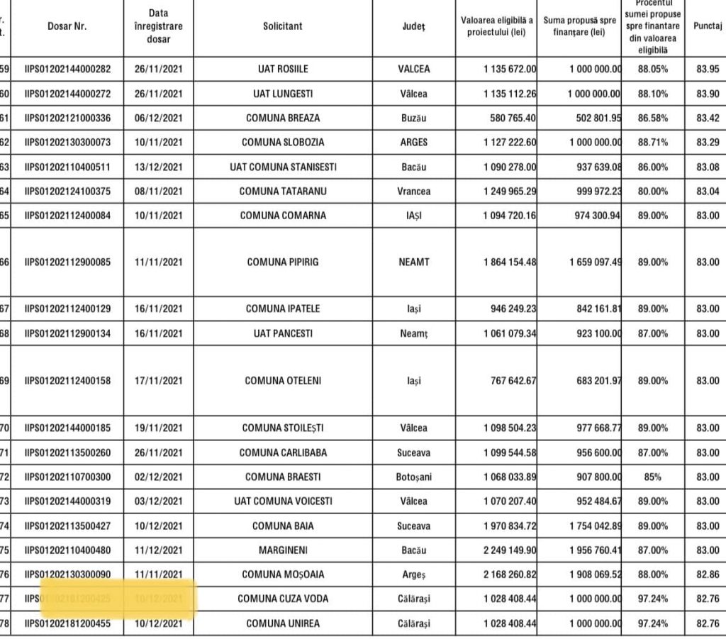 Din totalul de 470 de proiecte aprobate la nivel național, doar 4 sunt din județul Calarasi!